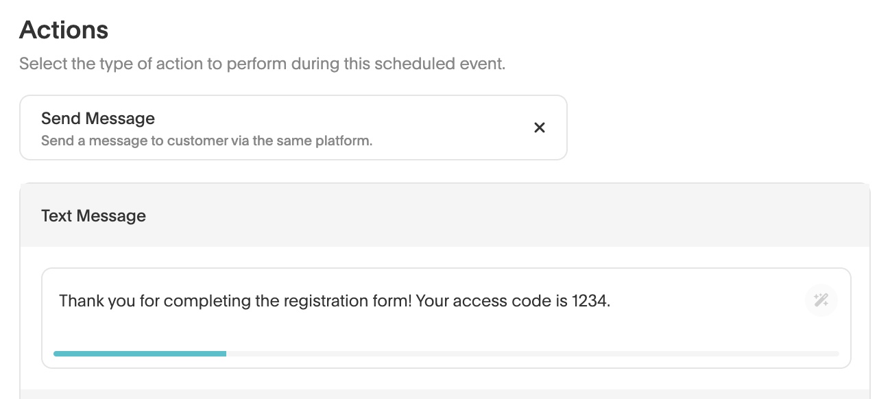 - Click on “+ Variant” under Action Variants. And include the message and access code to send to your guest.