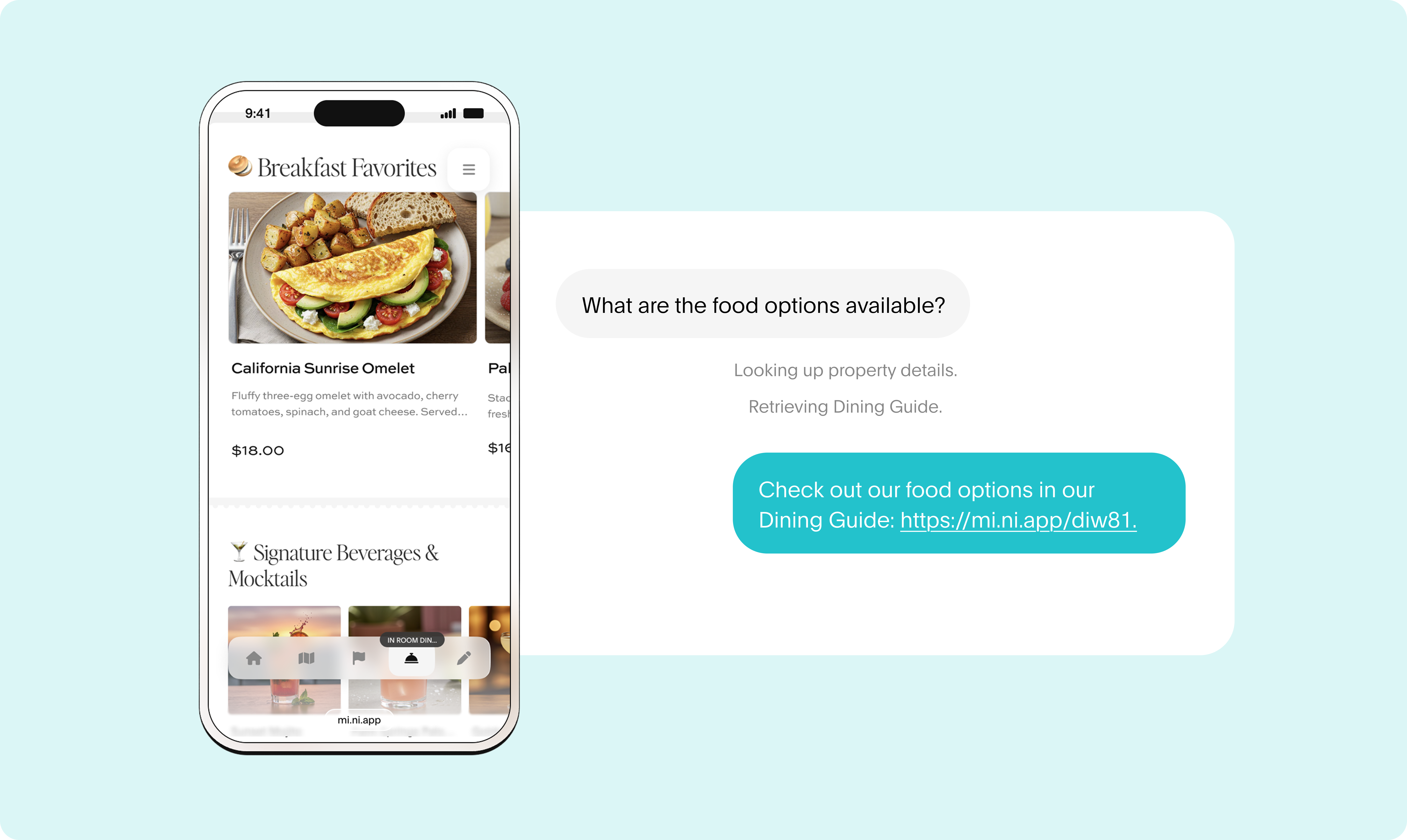 “If a guest asks about dining options, you can refer to the Mini App: Food Guide to help answer their questions.”