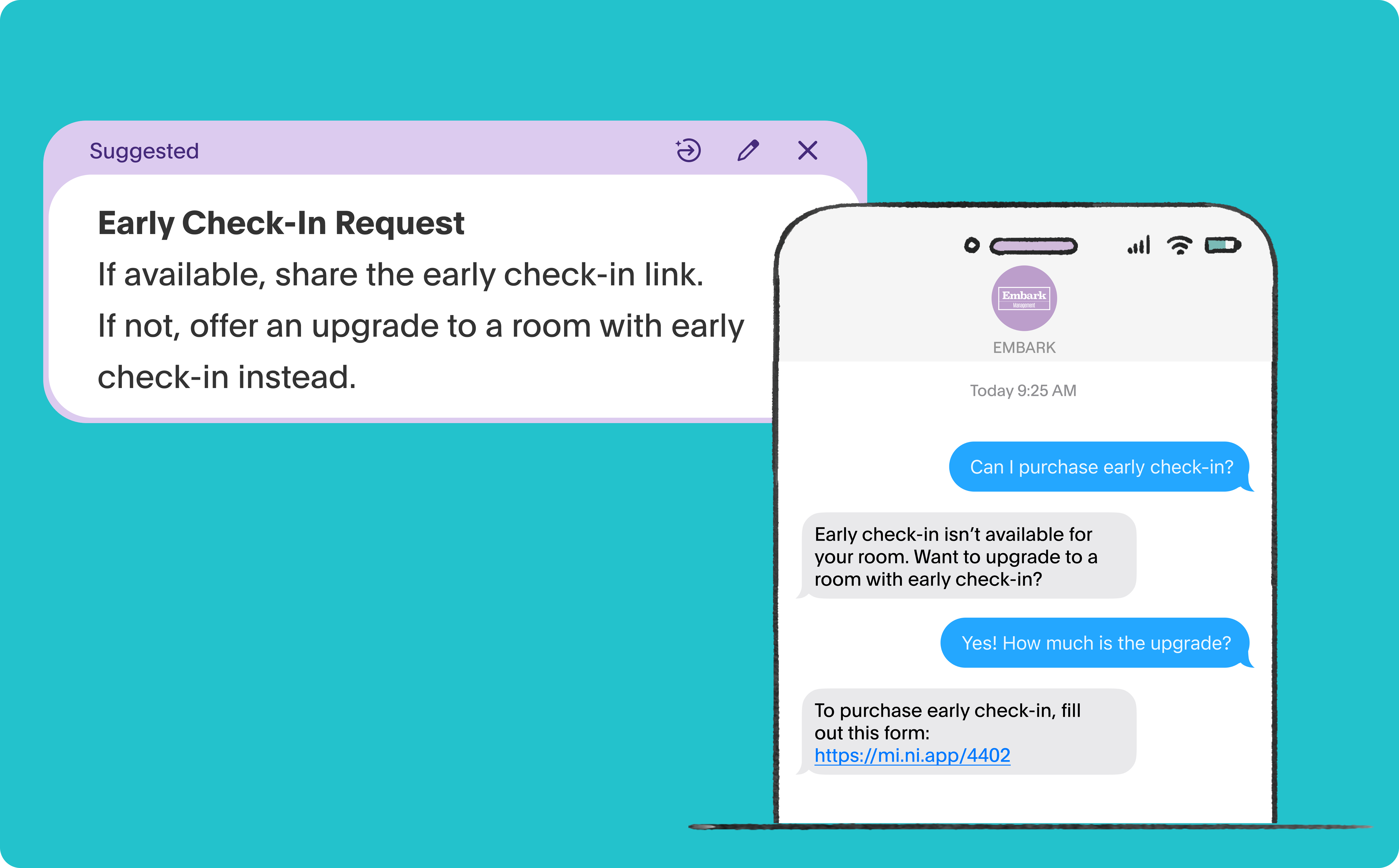 - Check-in is at 4pm. Offer early check-in if it’s available and a link to purchase.