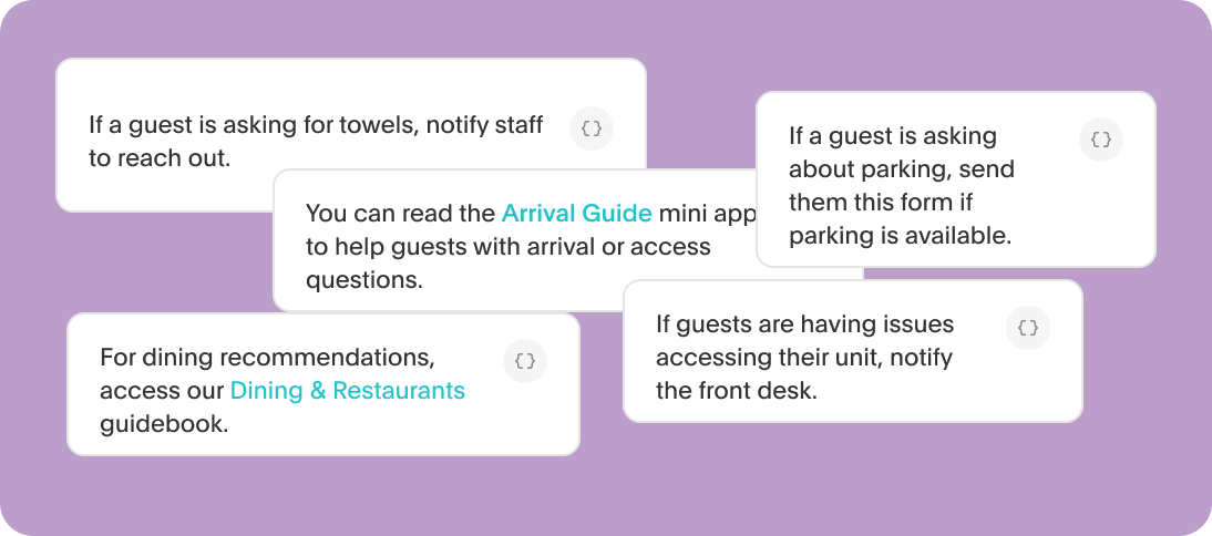 Most messaging tools can send canned responses. But here's where it breaks down: a pre-templated response treats every guest the same.