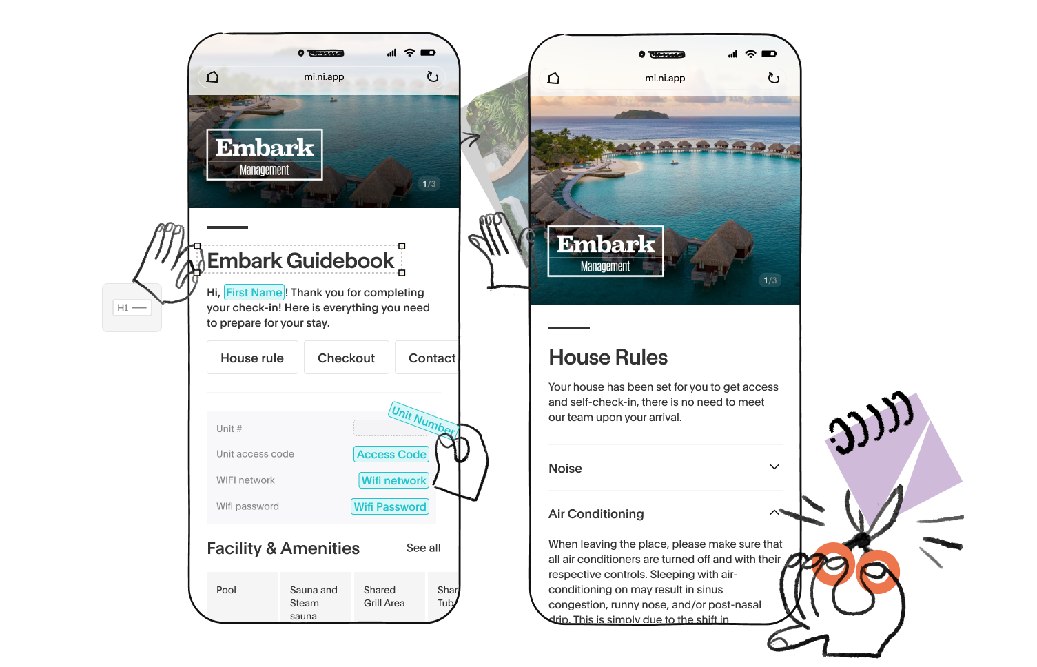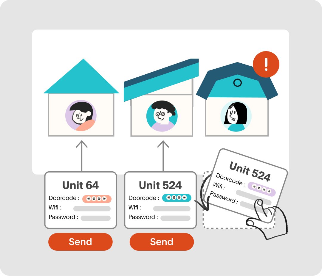 Example: Instead of managing multiple guidebooks, Akia customizes one guide to display unit-specific information, such as access codes and Wi-Fi details.