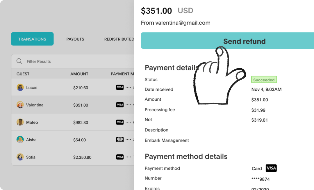 Managing refunds can be a time-consuming process that disrupts your team’s efficiency. With Akia Pay, issuing a refund is simple and integrated into your existing workflow. By processing refunds directly within the Akia platform, you save time and eliminate the need to juggle multiple systems, reducing the risk of errors and improving overall guest satisfaction.