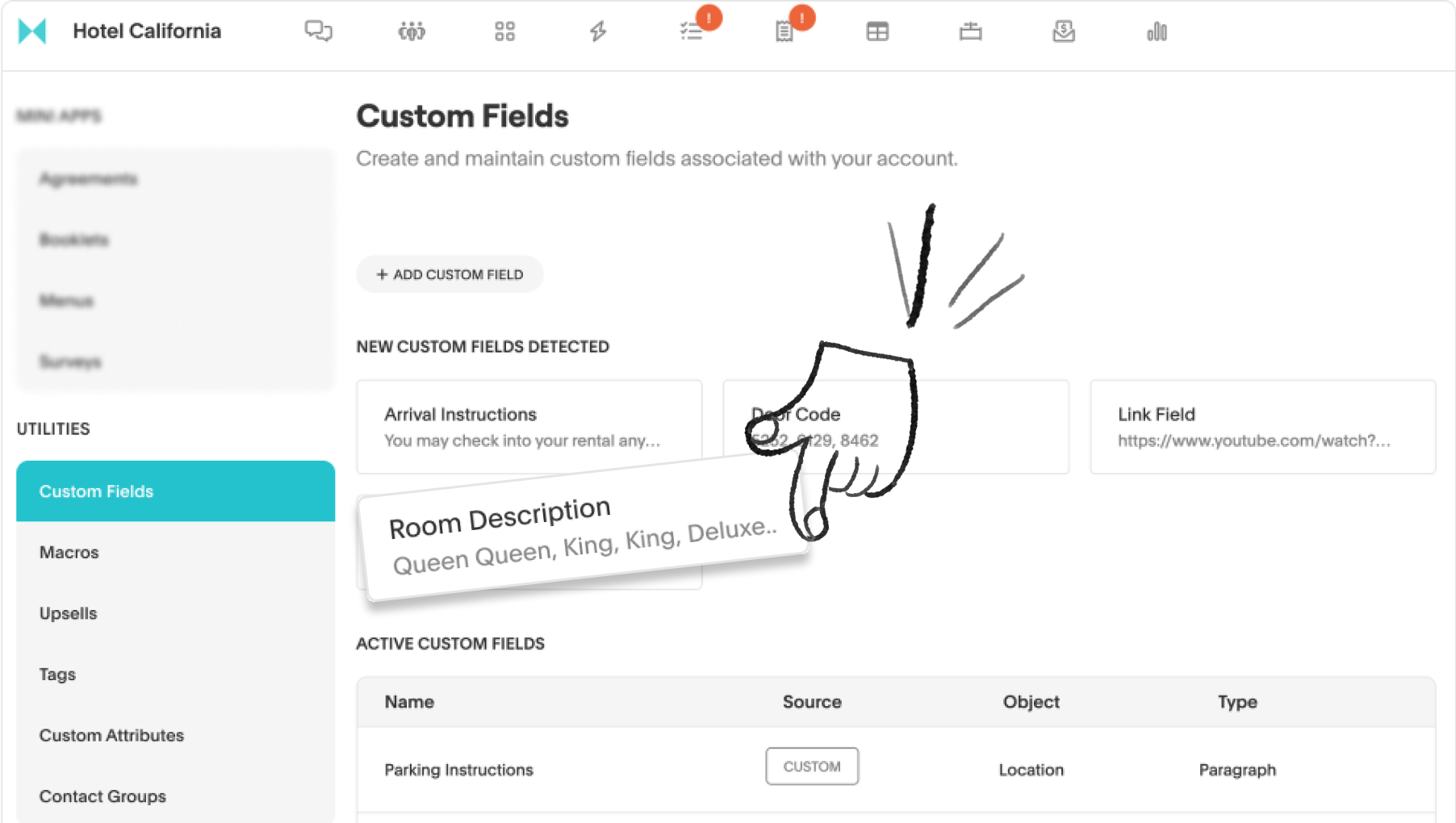 - Seamless data integration: Automatically sync custom fields from your PMS to Akia, eliminating the need for manual input, and relying on assistance.